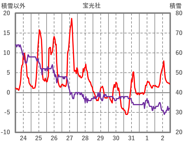 | 日 | 時 | 気温 | 降水 | 風向/風速 | 日照 | 積雪 | 降雪 |