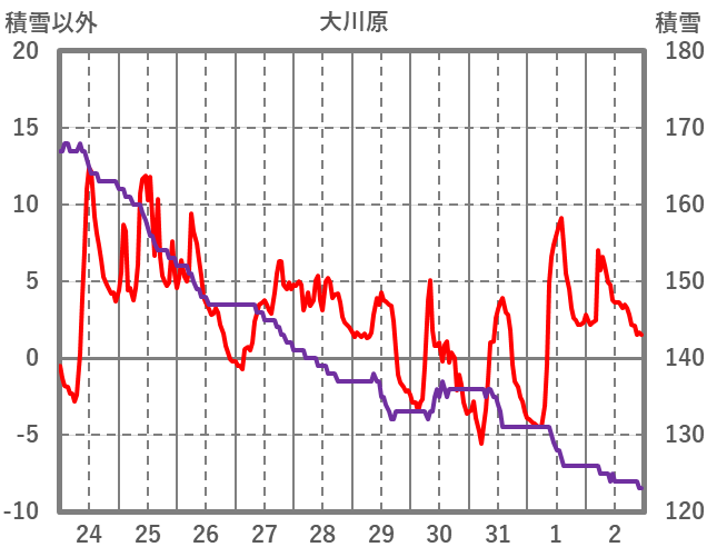 | 日 | 時 | 気温 | 降水 | 風向/風速 | 日照 | 積雪 | 降雪 |