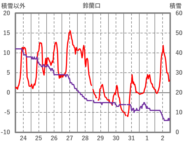 | 日 | 時 | 気温 | 降水 | 風向/風速 | 日照 | 積雪 | 降雪 |