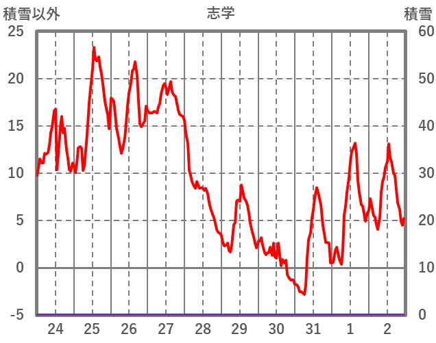 | 日 | 時 | 気温 | 降水 | 風向/風速 | 日照 | 積雪 | 降雪 |