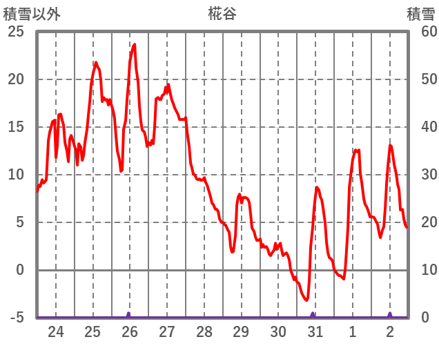 | 日 | 時 | 気温 | 降水 | 風向/風速 | 日照 | 積雪 | 降雪 |
