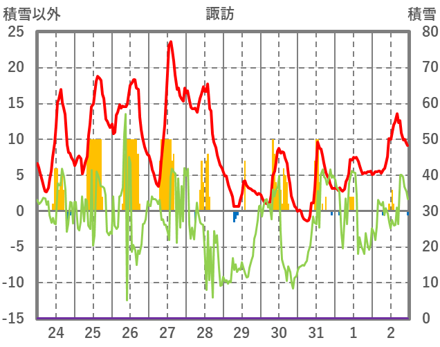 | 日 | 時 | 気温 | 降水 | 風向/風速 | 日照 | 積雪 | 降雪 |
