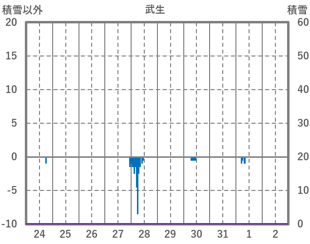 | 日 | 時 | 気温 | 降水 | 風向/風速 | 日照 | 積雪 | 降雪 |