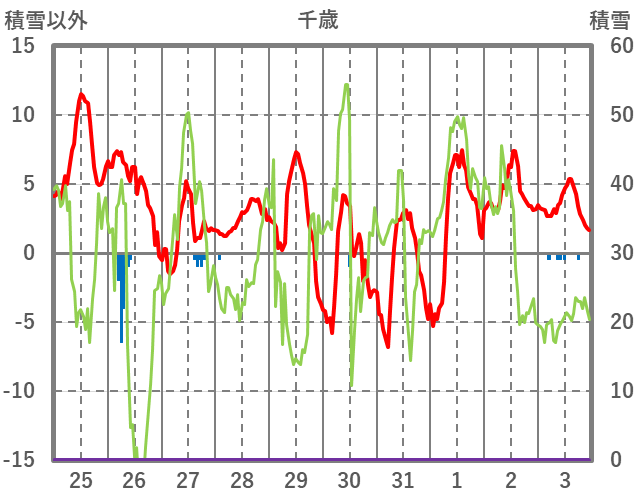 | 日 | 時 | 気温 | 降水 | 風向/風速 | 日照 | 積雪 | 降雪 |