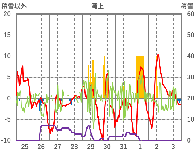 | 日 | 時 | 気温 | 降水 | 風向/風速 | 日照 | 積雪 | 降雪 |