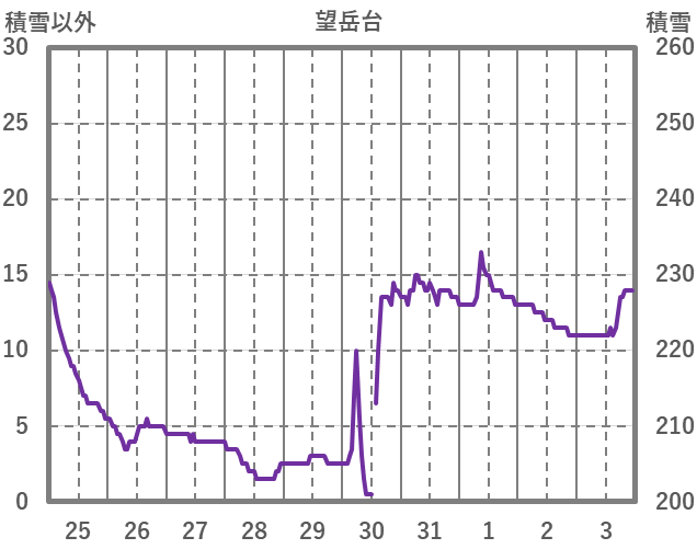| 日 | 時 | 気温 | 降水 | 風向/風速 | 日照 | 積雪 | 降雪 |