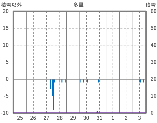 | 日 | 時 | 気温 | 降水 | 風向/風速 | 日照 | 積雪 | 降雪 |