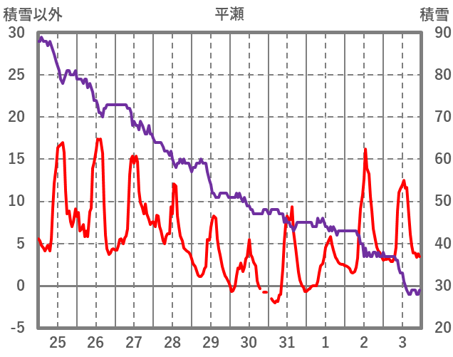 | 日 | 時 | 気温 | 降水 | 風向/風速 | 日照 | 積雪 | 降雪 |