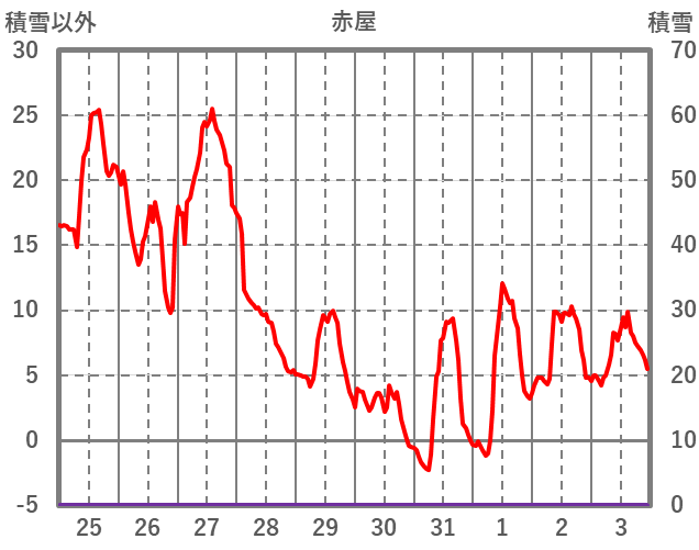 | 日 | 時 | 気温 | 降水 | 風向/風速 | 日照 | 積雪 | 降雪 |