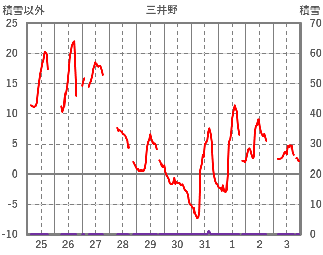 | 日 | 時 | 気温 | 降水 | 風向/風速 | 日照 | 積雪 | 降雪 |