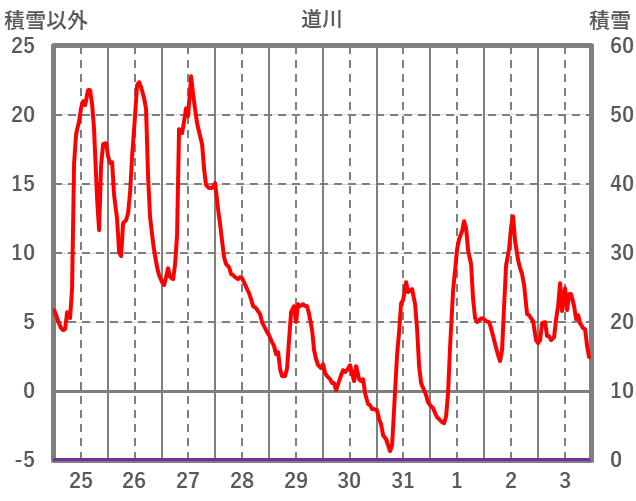 | 日 | 時 | 気温 | 降水 | 風向/風速 | 日照 | 積雪 | 降雪 |