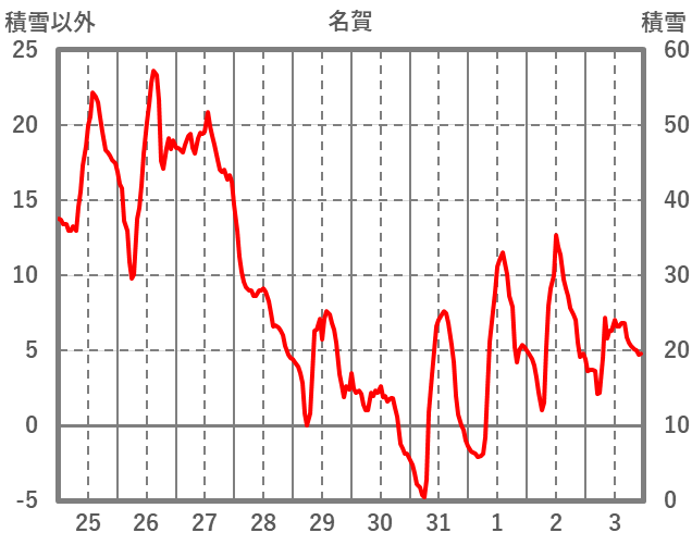 | 日 | 時 | 気温 | 降水 | 風向/風速 | 日照 | 積雪 | 降雪 |