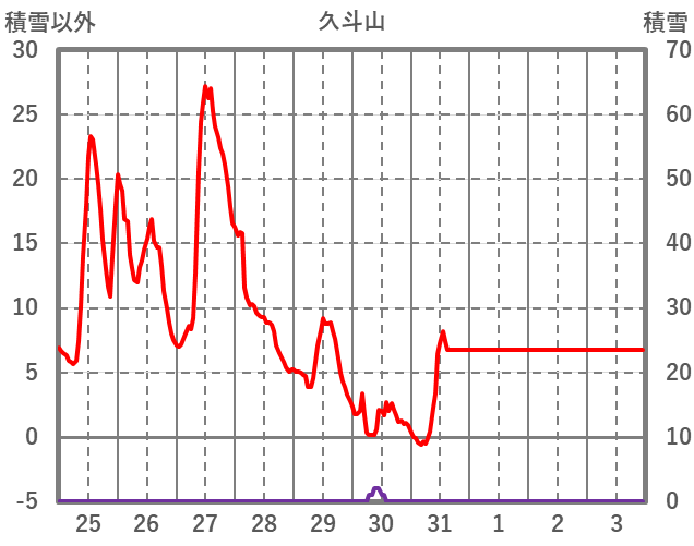 | 日 | 時 | 気温 | 降水 | 風向/風速 | 日照 | 積雪 | 降雪 |