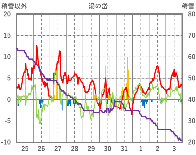 | 日 | 時 | 気温 | 降水 | 風向/風速 | 日照 | 積雪 | 降雪 |