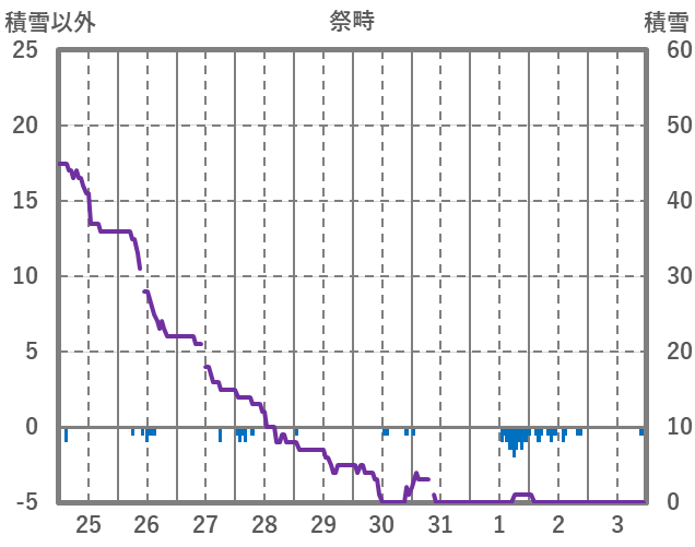 | 日 | 時 | 気温 | 降水 | 風向/風速 | 日照 | 積雪 | 降雪 |