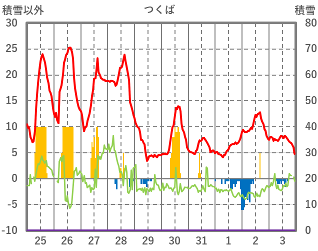 | 日 | 時 | 気温 | 降水 | 風向/風速 | 日照 | 積雪 | 降雪 |