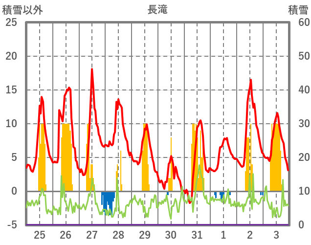 | 日 | 時 | 気温 | 降水 | 風向/風速 | 日照 | 積雪 | 降雪 |