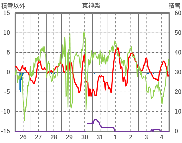 | 日 | 時 | 気温 | 降水 | 風向/風速 | 日照 | 積雪 | 降雪 |