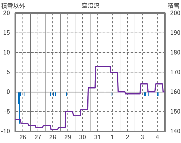 | 日 | 時 | 気温 | 降水 | 風向/風速 | 日照 | 積雪 | 降雪 |
