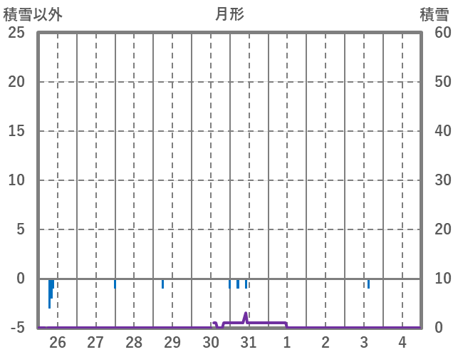 | 日 | 時 | 気温 | 降水 | 風向/風速 | 日照 | 積雪 | 降雪 |
