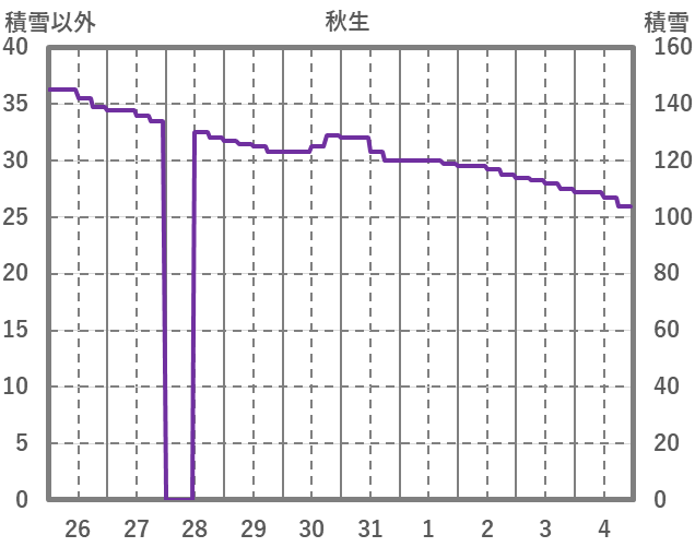 | 日 | 時 | 気温 | 降水 | 風向/風速 | 日照 | 積雪 | 降雪 |