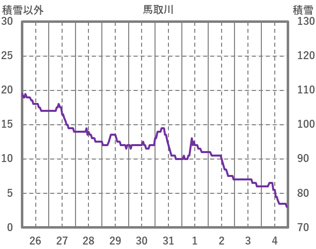 | 日 | 時 | 気温 | 降水 | 風向/風速 | 日照 | 積雪 | 降雪 |