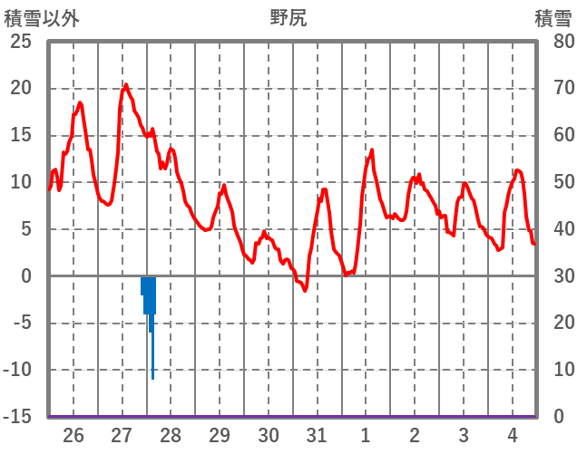 | 日 | 時 | 気温 | 降水 | 風向/風速 | 日照 | 積雪 | 降雪 |