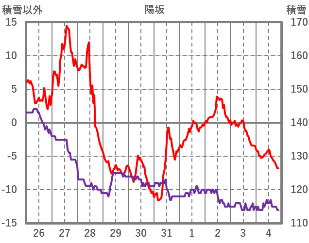 | 日 | 時 | 気温 | 降水 | 風向/風速 | 日照 | 積雪 | 降雪 |