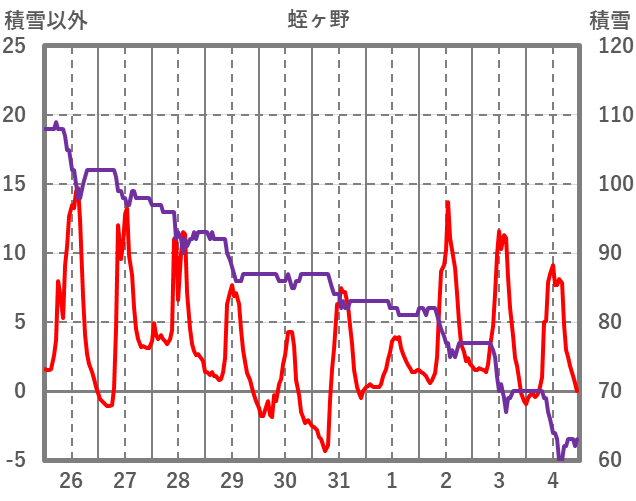 | 日 | 時 | 気温 | 降水 | 風向/風速 | 日照 | 積雪 | 降雪 |
