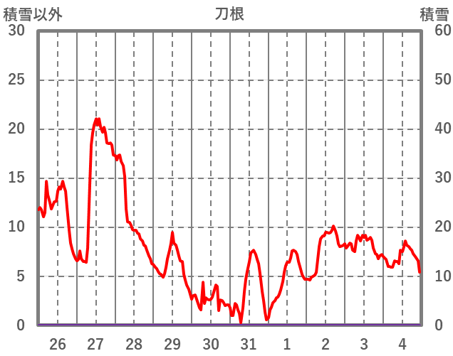 | 日 | 時 | 気温 | 降水 | 風向/風速 | 日照 | 積雪 | 降雪 |