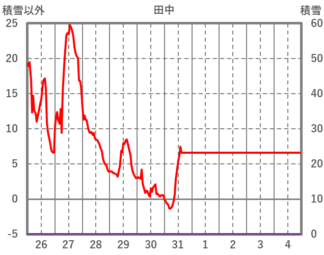 | 日 | 時 | 気温 | 降水 | 風向/風速 | 日照 | 積雪 | 降雪 |