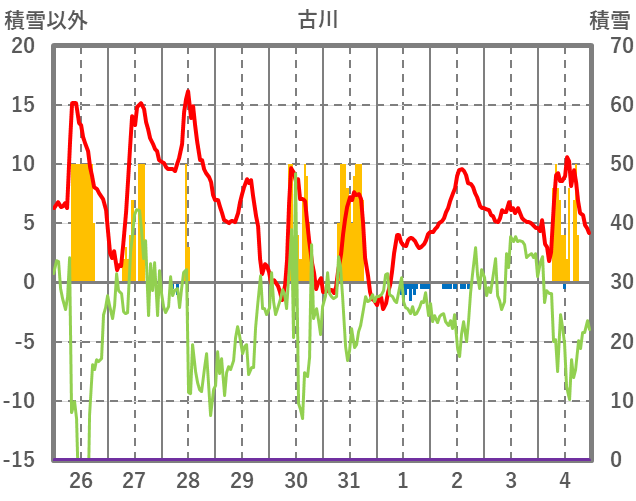 | 日 | 時 | 気温 | 降水 | 風向/風速 | 日照 | 積雪 | 降雪 |