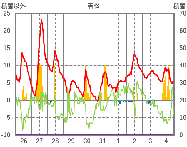 | 日 | 時 | 気温 | 降水 | 風向/風速 | 日照 | 積雪 | 降雪 |