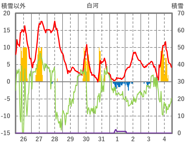 | 日 | 時 | 気温 | 降水 | 風向/風速 | 日照 | 積雪 | 降雪 |