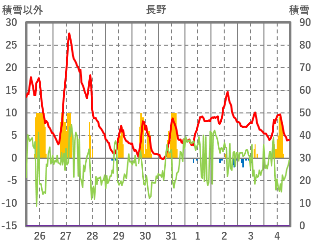 | 日 | 時 | 気温 | 降水 | 風向/風速 | 日照 | 積雪 | 降雪 |
