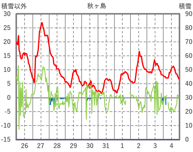 | 日 | 時 | 気温 | 降水 | 風向/風速 | 日照 | 積雪 | 降雪 |