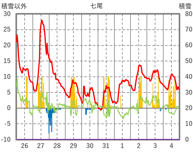 | 日 | 時 | 気温 | 降水 | 風向/風速 | 日照 | 積雪 | 降雪 |