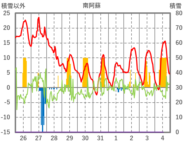 | 日 | 時 | 気温 | 降水 | 風向/風速 | 日照 | 積雪 | 降雪 |