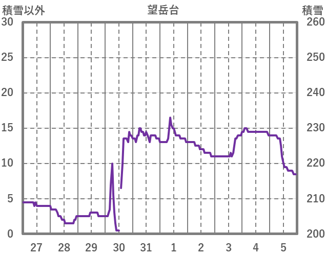 | 日 | 時 | 気温 | 降水 | 風向/風速 | 日照 | 積雪 | 降雪 |