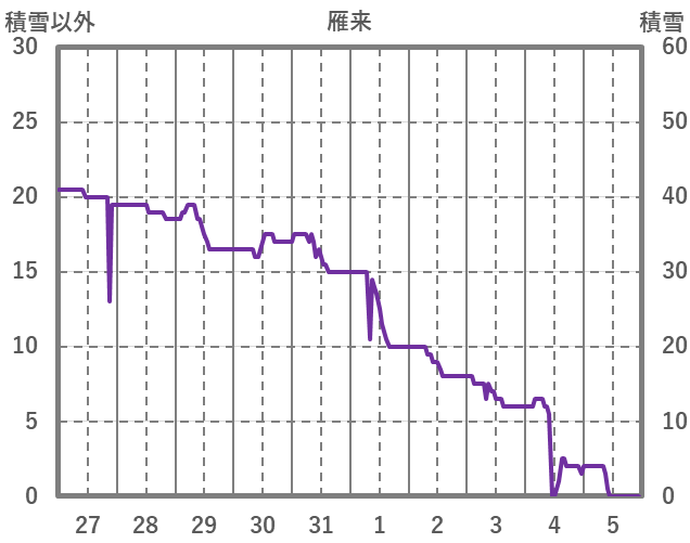 | 日 | 時 | 気温 | 降水 | 風向/風速 | 日照 | 積雪 | 降雪 |