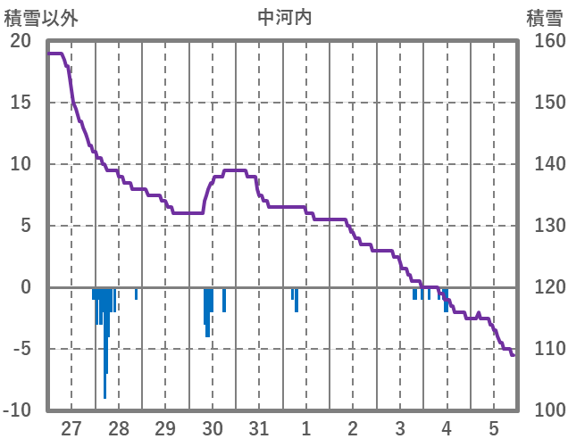 | 日 | 時 | 気温 | 降水 | 風向/風速 | 日照 | 積雪 | 降雪 |