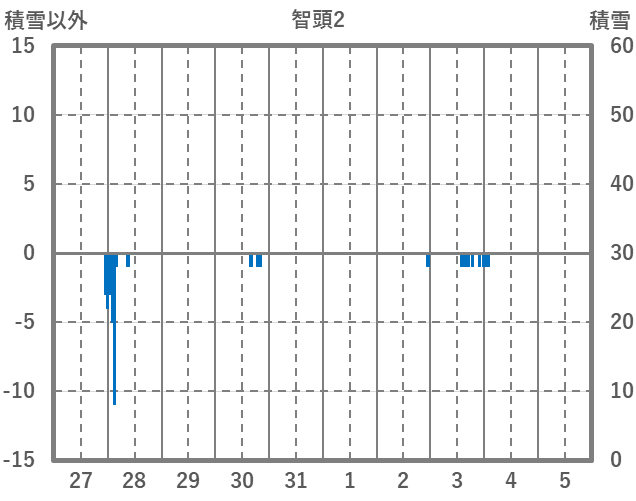 | 日 | 時 | 気温 | 降水 | 風向/風速 | 日照 | 積雪 | 降雪 |
