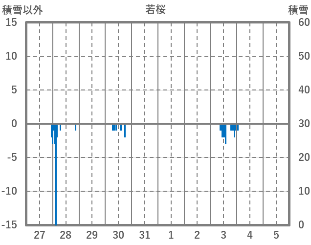 | 日 | 時 | 気温 | 降水 | 風向/風速 | 日照 | 積雪 | 降雪 |