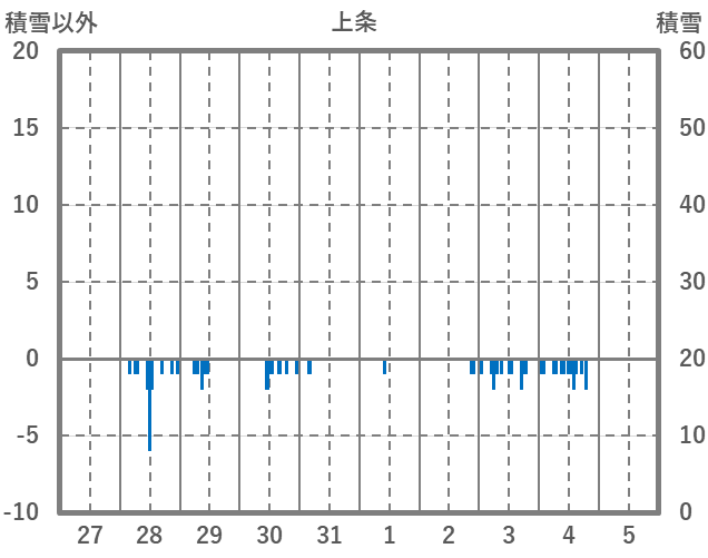 | 日 | 時 | 気温 | 降水 | 風向/風速 | 日照 | 積雪 | 降雪 |