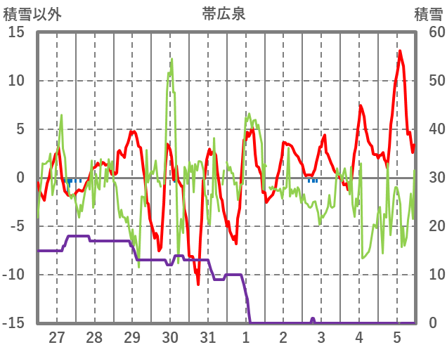 | 日 | 時 | 気温 | 降水 | 風向/風速 | 日照 | 積雪 | 降雪 |