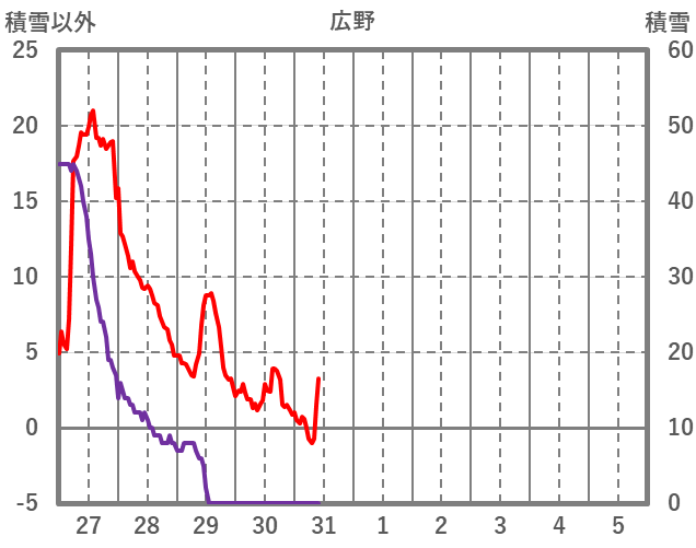 | 日 | 時 | 気温 | 降水 | 風向/風速 | 日照 | 積雪 | 降雪 |