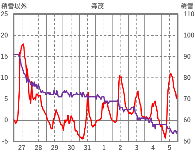 | 日 | 時 | 気温 | 降水 | 風向/風速 | 日照 | 積雪 | 降雪 |