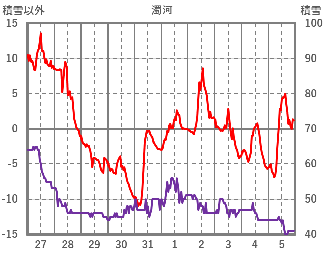 | 日 | 時 | 気温 | 降水 | 風向/風速 | 日照 | 積雪 | 降雪 |