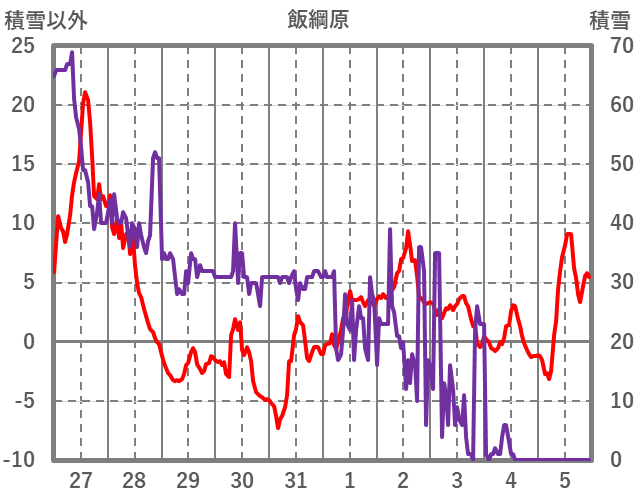 | 日 | 時 | 気温 | 降水 | 風向/風速 | 日照 | 積雪 | 降雪 |