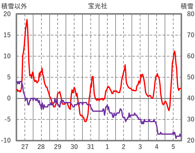 | 日 | 時 | 気温 | 降水 | 風向/風速 | 日照 | 積雪 | 降雪 |